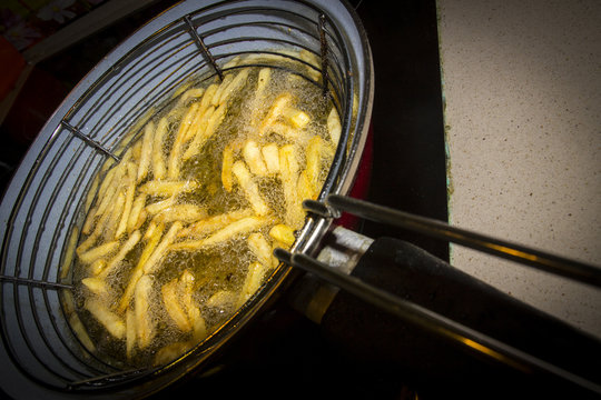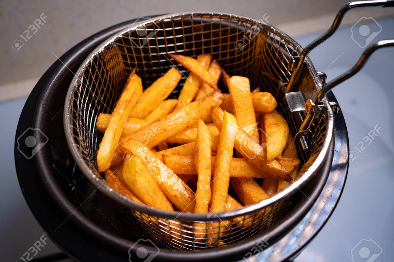 Mini Freidora Casera Llévate Una Cesta De Patatas Fritas. Cocinar En Casa Fotos, retratos, imágenes y fotografía de archivo libres de derecho. Image 142736777