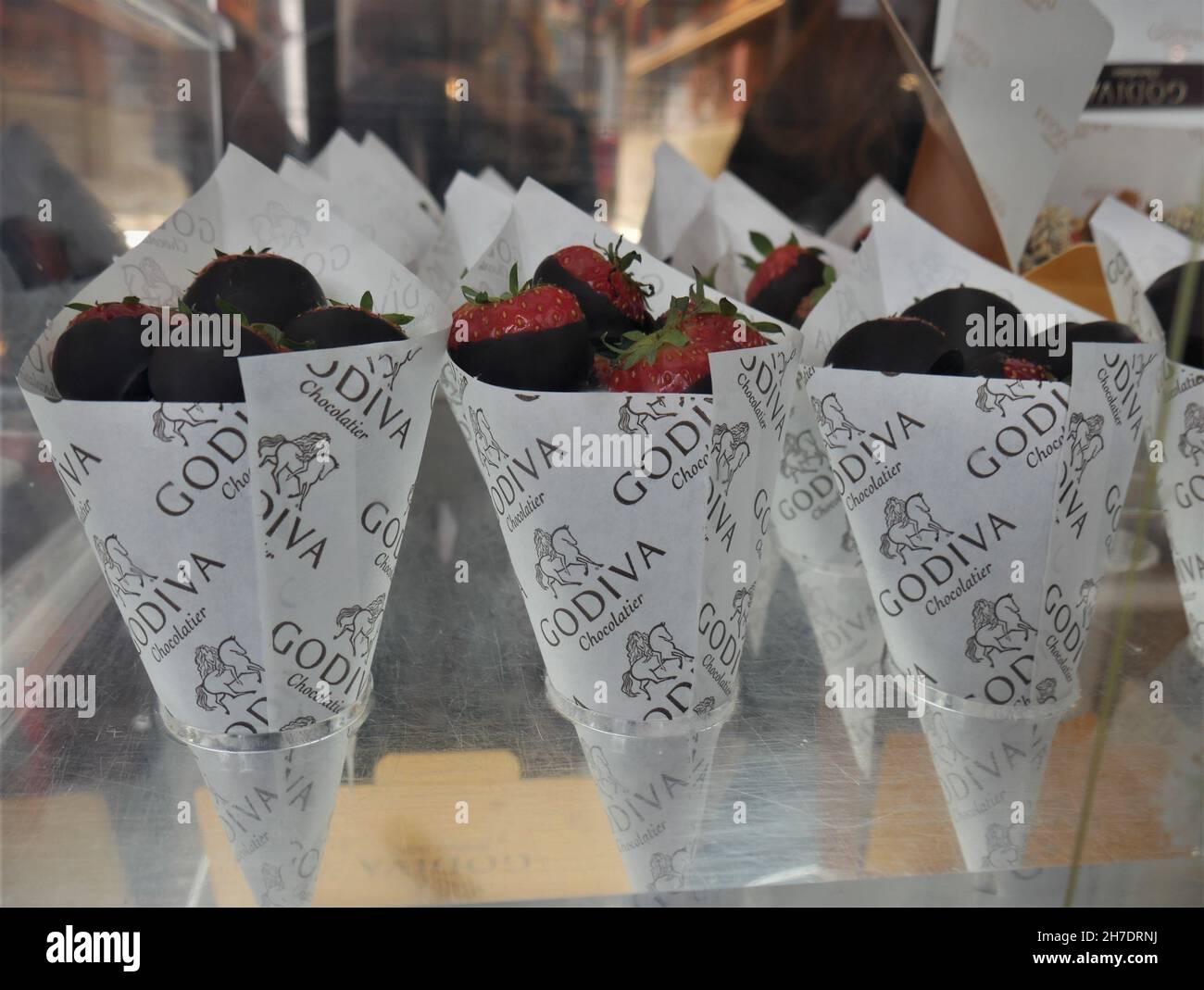 Chocolate strawberries at Godiva store, 5th Avenue, Manhattan, New York City Stock Photo - Alamy
