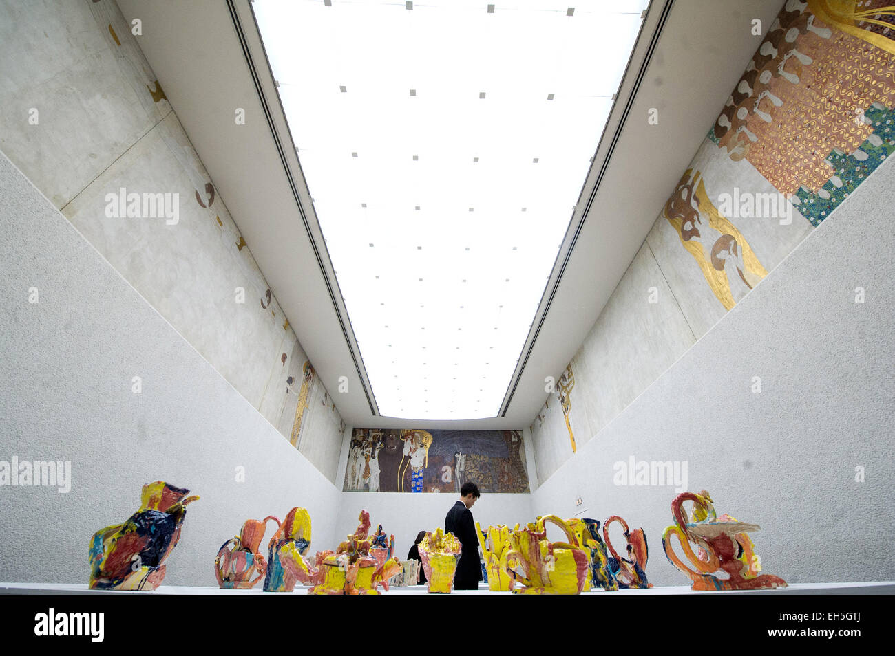 Viena. 6 Mar, 2015. Foto tomada el 6 de marzo de 2015 muestra el friso de Beethoven en el Palacio de la Secesión de Viena en Viena, Austria. Uno de Austria las
