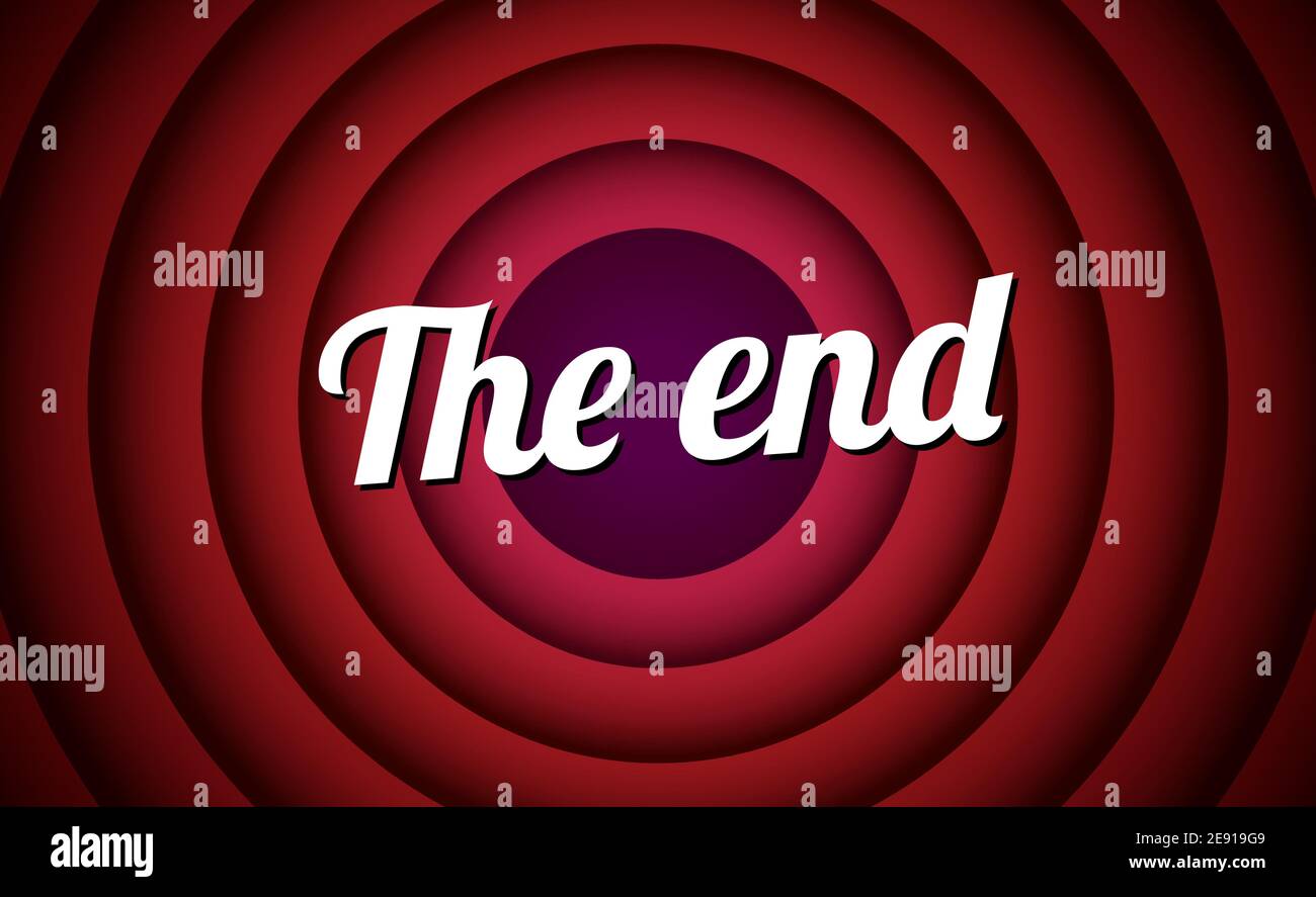 El fin de la película de la fuente del cartel de cómic círculo. Película de dibujos animados fin cartel logotipo fondo Imagen Vector de stock - Alamy