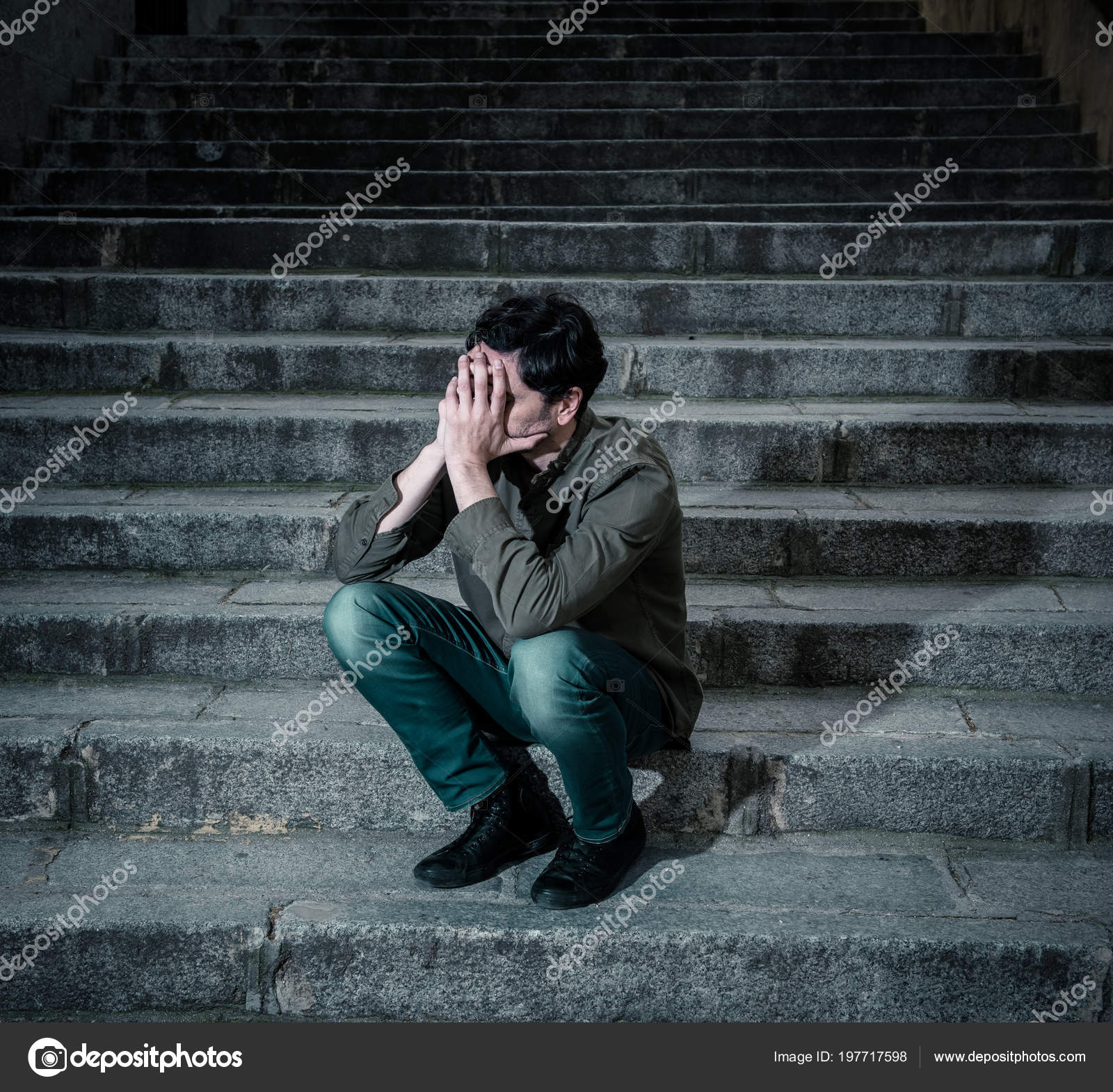 Potret Pria Muda Depresi Yang Sedih Menangis Dengan Perasaan ...