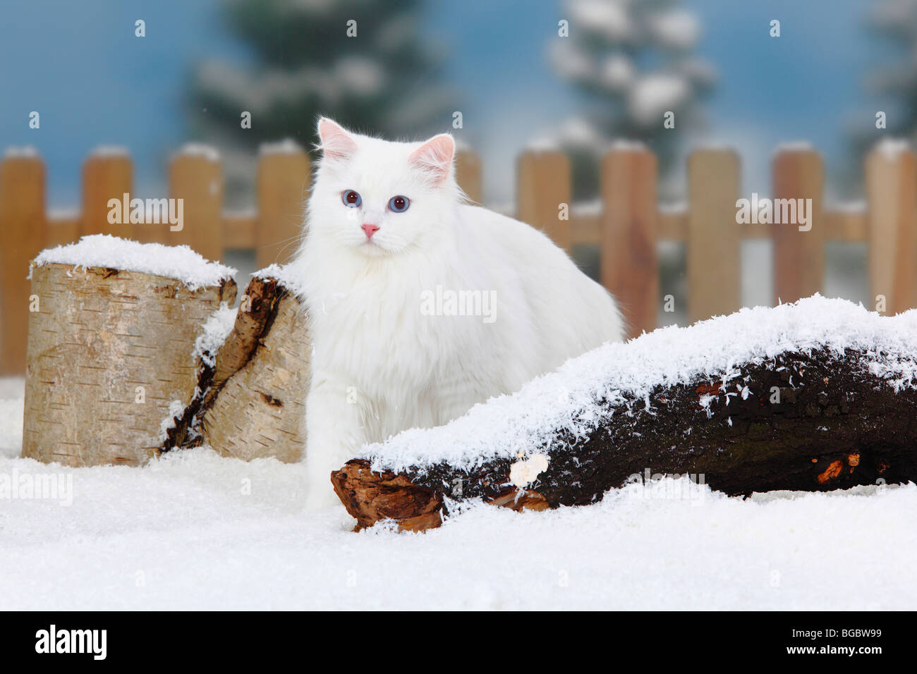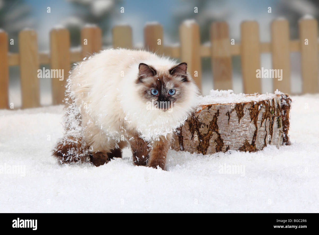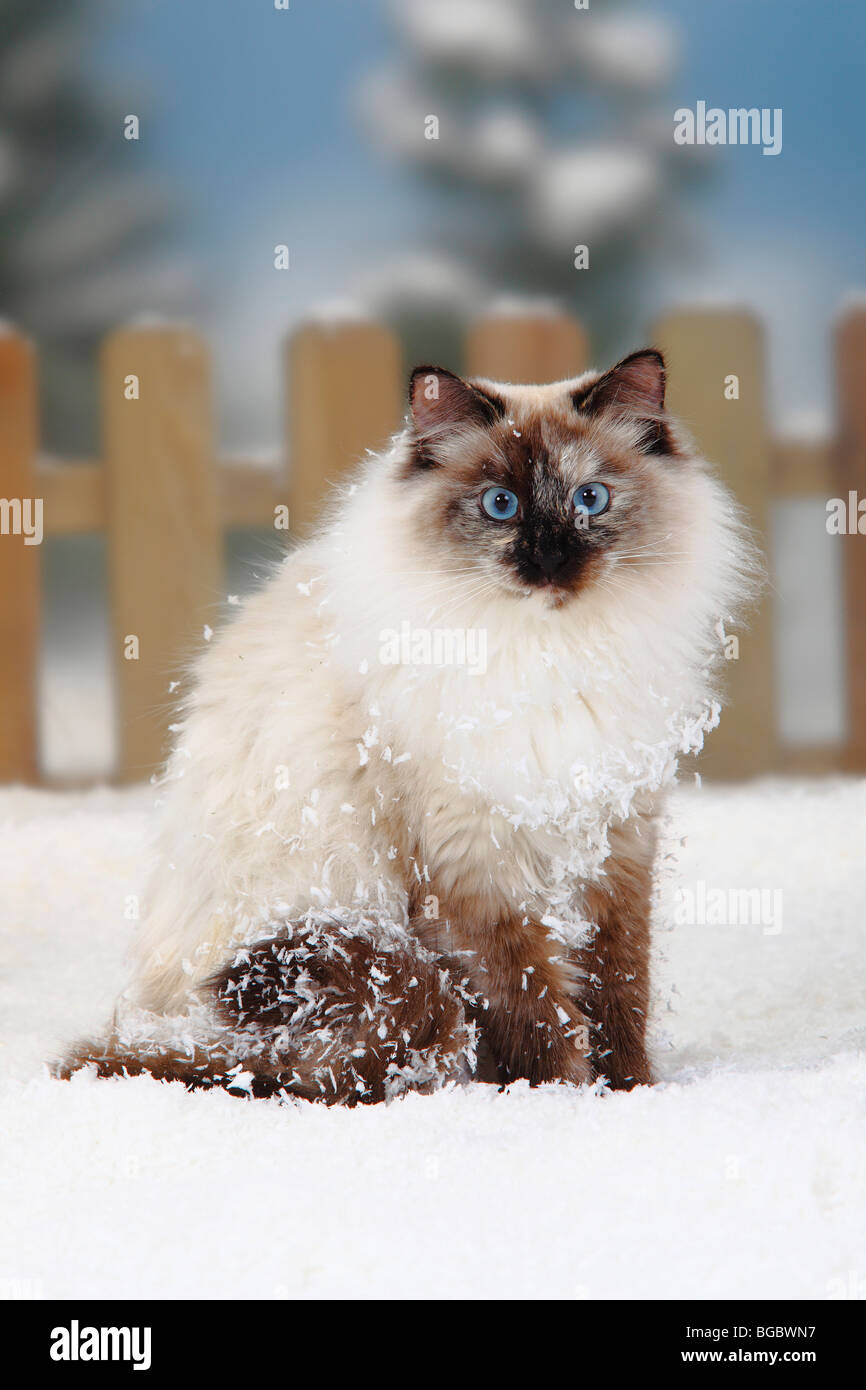 Neva Masquerade gato doméstico siberiano sentado en la nieve durante el invierno Fotografía de stock - Alamy