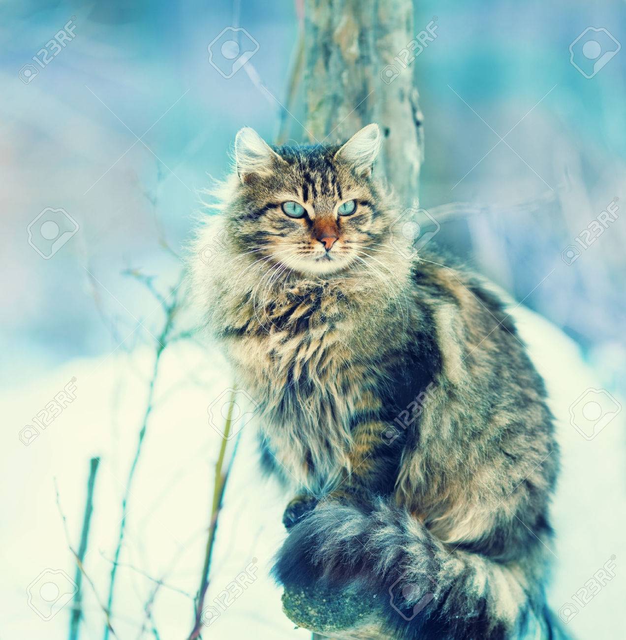 Gato Siberiano En La Nieve Al Aire Libre En Invierno Foto de archivo - Imagen de color, cubo: 207931430