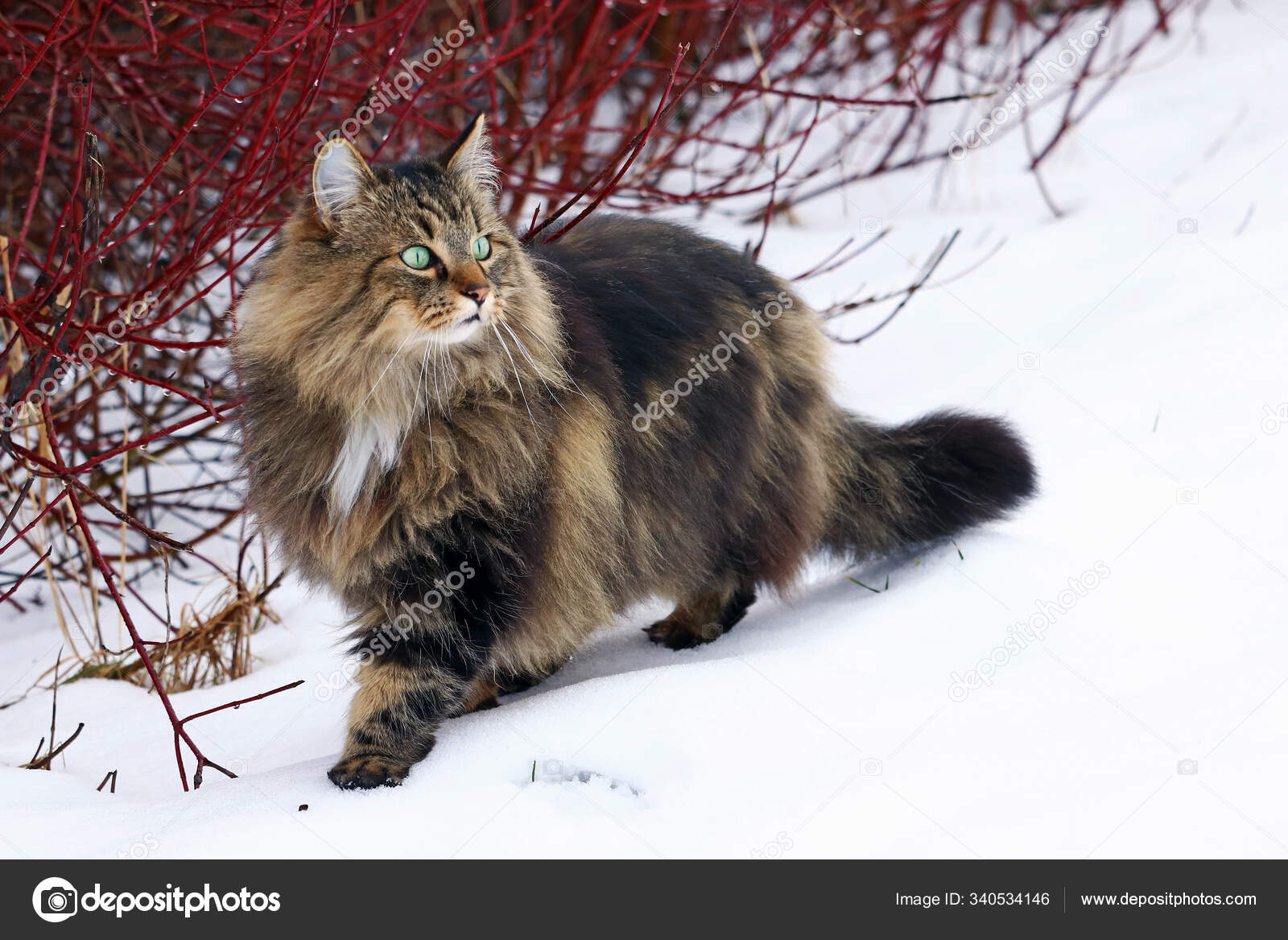Gato Siberiano En La Naturaleza Del Invierno En Nieve Foto de archivo - Imagen de bosque, siberiano: 101001596