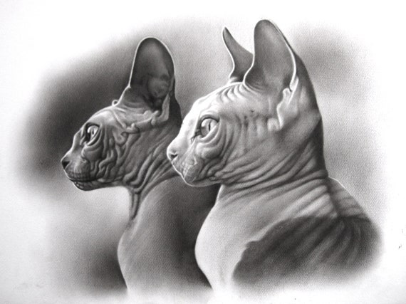 Gato Sphynx Retrato de mascota personalizado en blanco y negro retrato de perro dibujado a mano de su foto. Regalo para los amantes de los gatos. - Etsy España