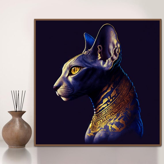 Gato Sphynx negro, póster de gato Sphynx, impresión de arte de gato esfinge, regalo de amante