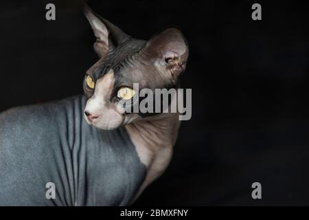 Black and white hairless Sphynx cat isolated on a black background Stock Photo - Alamy