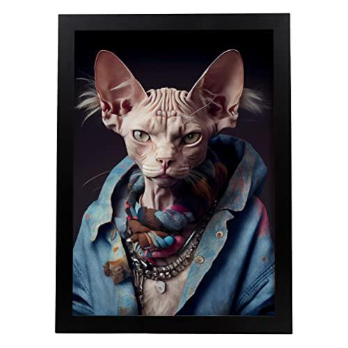 Nacnic Poster De Gato Esfinge En Estilo De Fotografía A Todo Color Divertidas Ilustraciones Realistas De Animales Con Ropa Humana A3 Marco Negro | Leroy Merlin