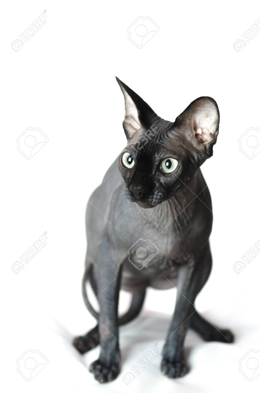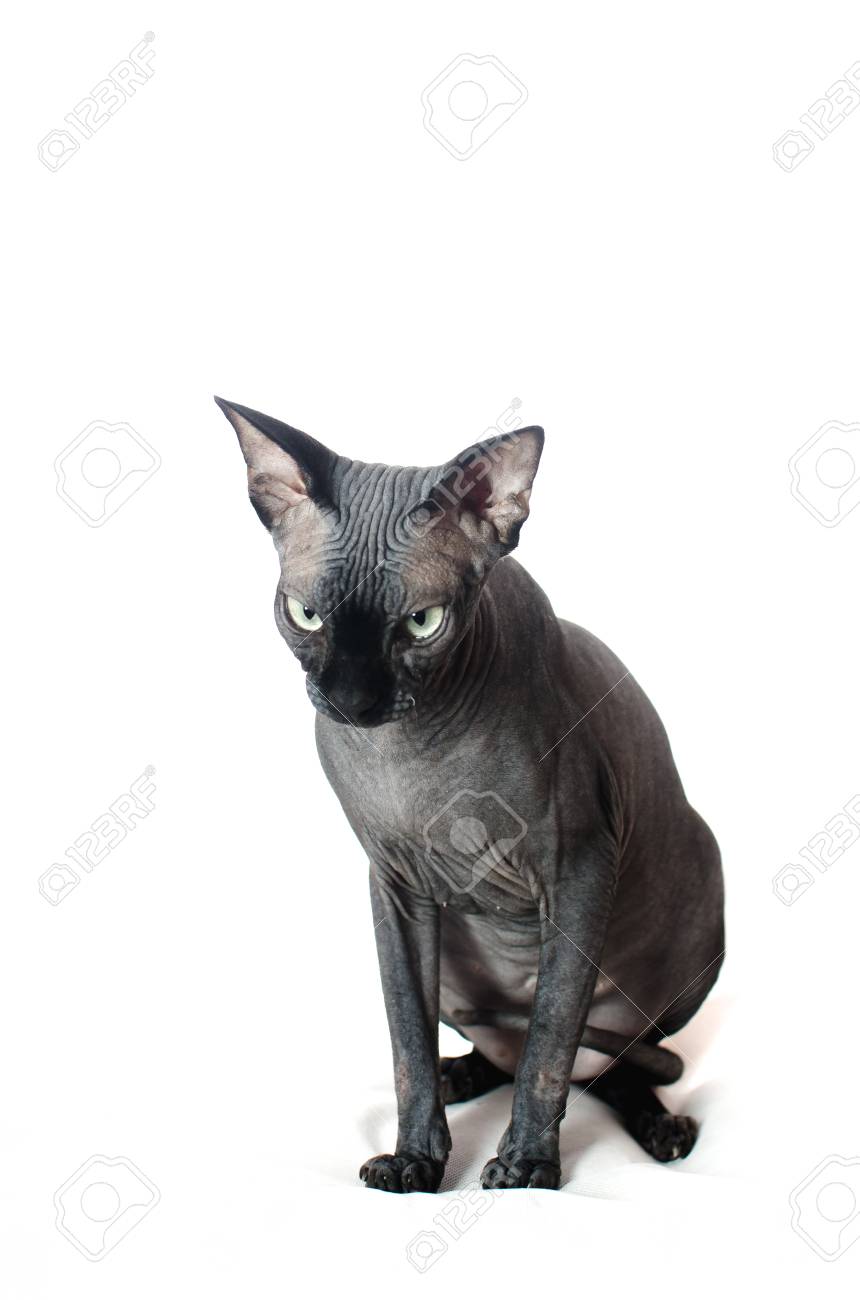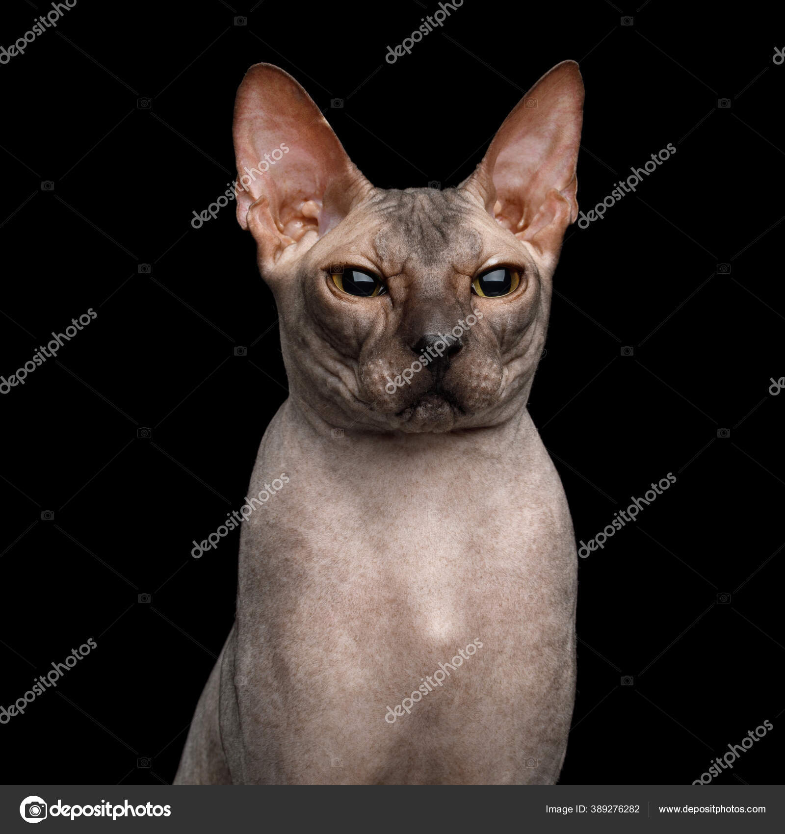 Divertido Gato Esfinge Sobre Fondo Negro Aislado Imagen de archivo - Imagen de animal, curiosidad: 213889447