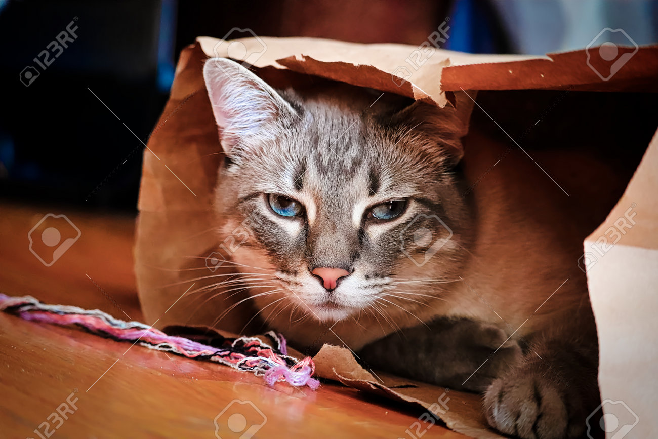 Un Gato Muy Enojado Mirando Por Una Bolsa De Papel Marrón Fotos, retratos, imágenes y fotografía de archivo libres de derecho. Image 160532436