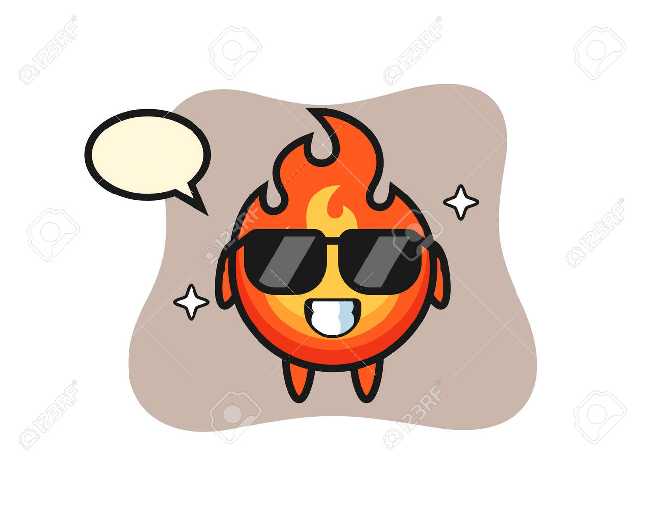 Mascota De Dibujos Animados De Fuego Con Gesto Genial, Diseño De Estilo Lindo Para Camiseta, Pegatina, Elemento De Logotipo Ilustraciones svg, vectoriales, clip art vectorizado libre de derechos. Image 167062003