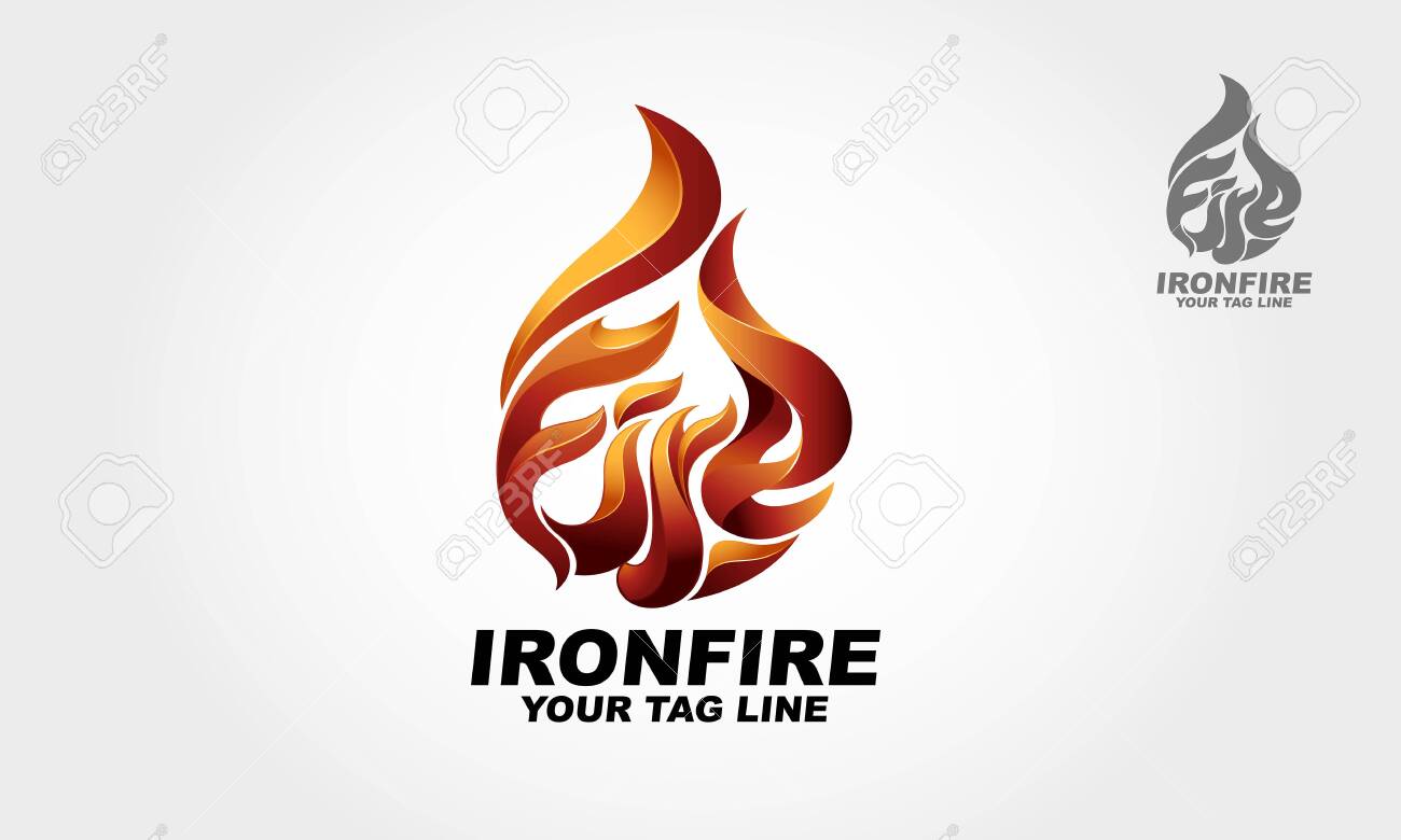 Logotipo De Vector De Fuego De Hierro Hecho De Letras De Fuego. El Logo Luce Genial. Se Verá Muy Bien En Una Tarjeta De Presentación, Membrete O Sobre, Así Como En Un