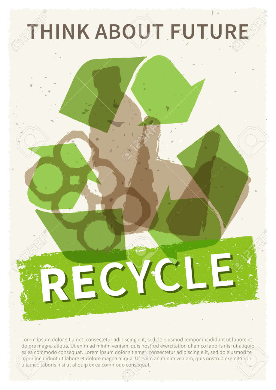 Reciclarlo Vector Del Cartel. El Símbolo De Reciclaje Con Cosas Reciclables Ilustración Creativa. Ilustraciones svg, vectoriales, clip art vectorizado libre de derechos. Image 68711346
