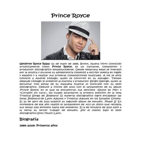 Prince Royce Earth - 👉🏻 Geoffrey Royce Rojas (born May 11, 1989), known by his stage name Prince Royce, is an American singer and songwriter from The Bronx. At an early age,