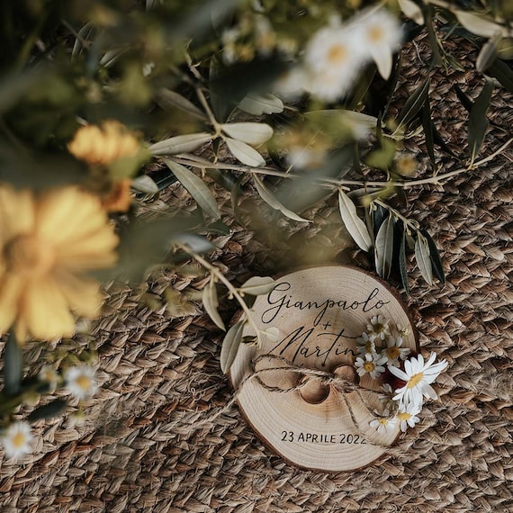 Hand Painted Wooden Rings Holder / Custom Ring Holder on Wood Slice / Personalized With Groom's Names - Etsy Denmark
