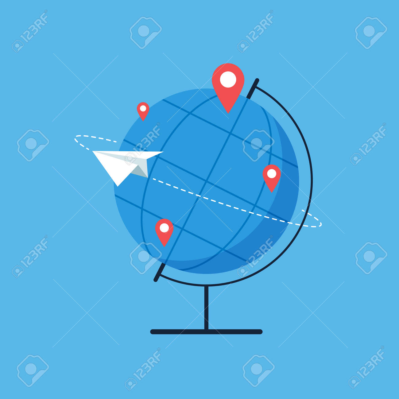 Globo Plano Del Mundo Con El Icono Del Perno Del Mapa Ubicaciones En El Mapa De La Tierra Geo Coloca Concepto Ilustración del Vector - Ilustración de globo, vacaciones: 108922365