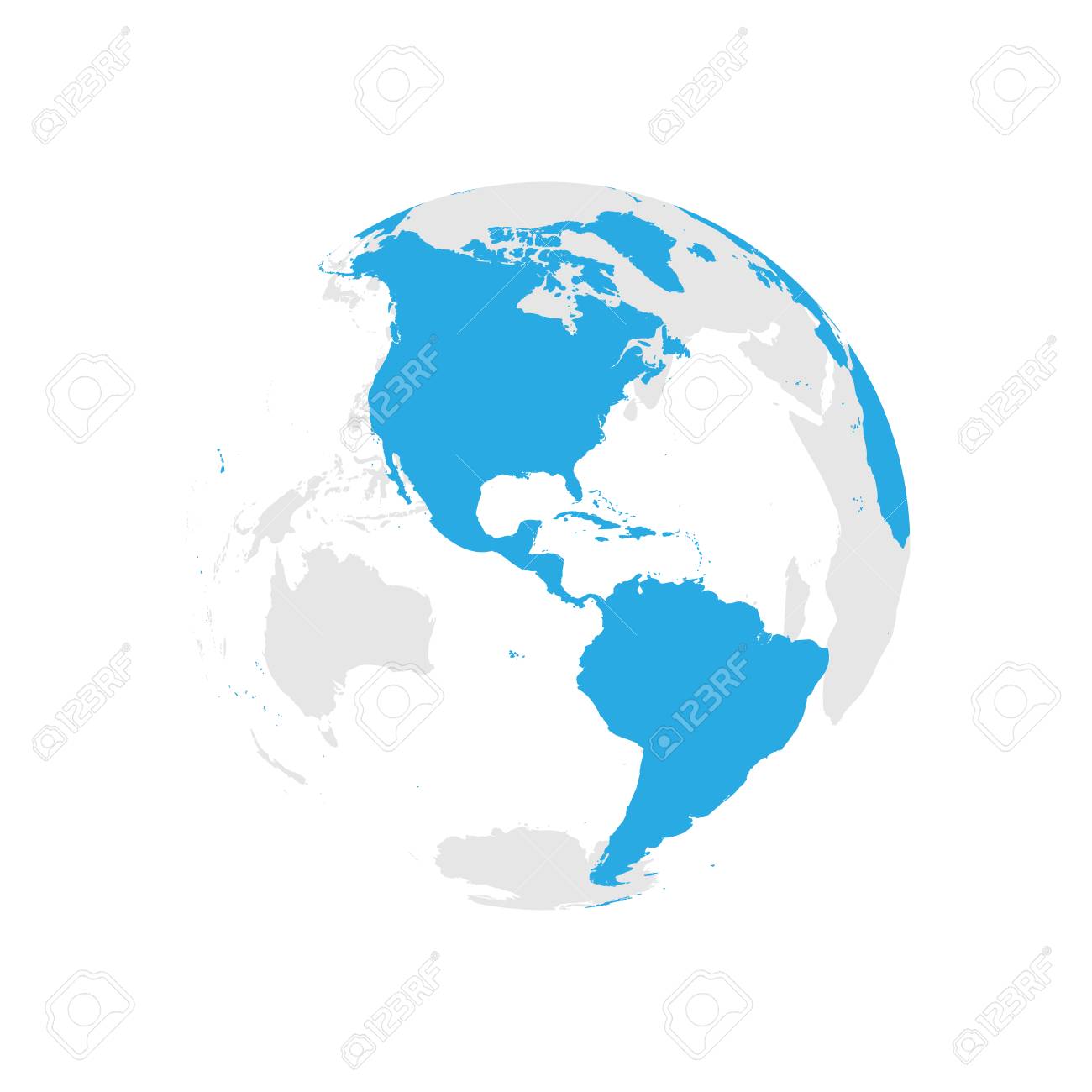 Globo Terráqueo Con Mapa Del Mundo Azul. Centrado En Las Américas. Ilustración De Vector Plano Ilustraciones svg, vectoriales, clip art vectorizado libre de derechos. Image 94667626