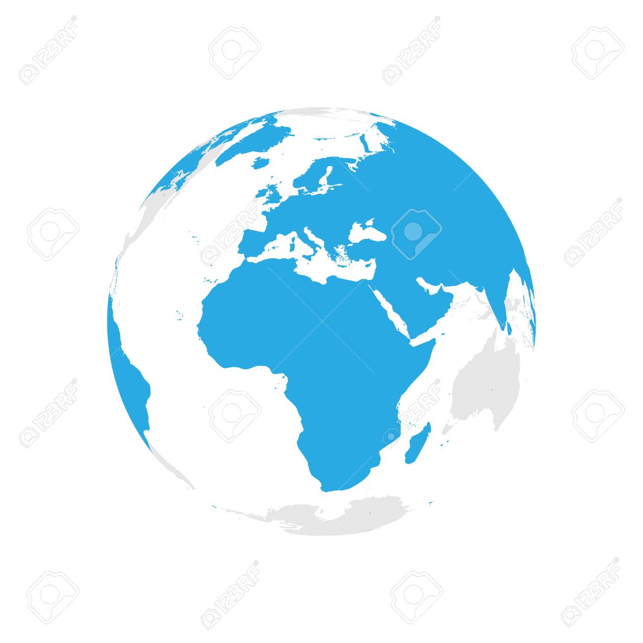 Globo Terráqueo Con Mapa Del Mundo Azul. Centrado En África Y Europa. Ilustración De Vector Plano Ilustraciones svg, vectoriales, clip art vectorizado libre de derechos. Image 94792644