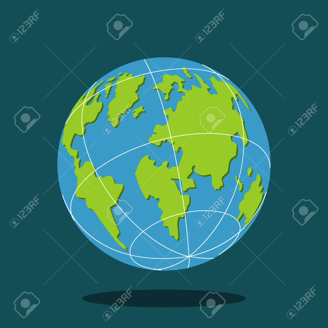 Globo De La Tierra Con El Icono Plano Del Vector Del Planeta Del Mapa Del Mundo Aislado En Fondo. Ilustraciones svg, vectoriales, clip art vectorizado libre de derechos. Image 94818286