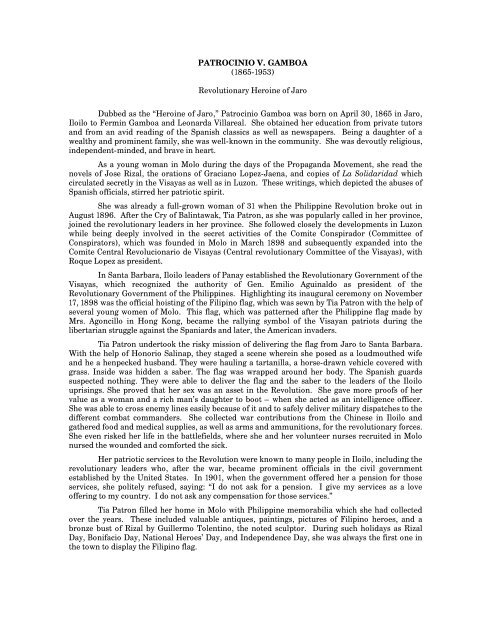 Patrocinio Gamboa was born o - National Historical Commission of ...