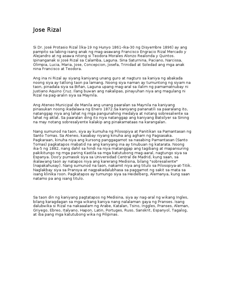 Ang Talambuhay Ni Dr. Jose Rizal | PDF