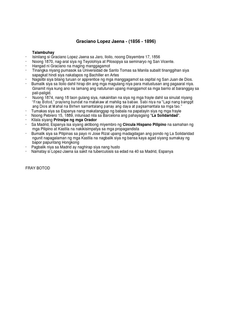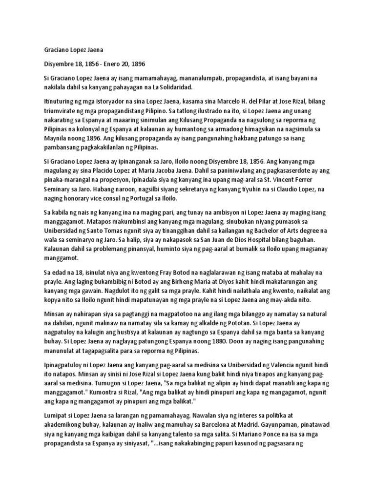 Talambuhay - Si Graciano López Jaena (18 Disyembre 1856 – 20 Enero 1896) ay isang Pilipinong - Studocu