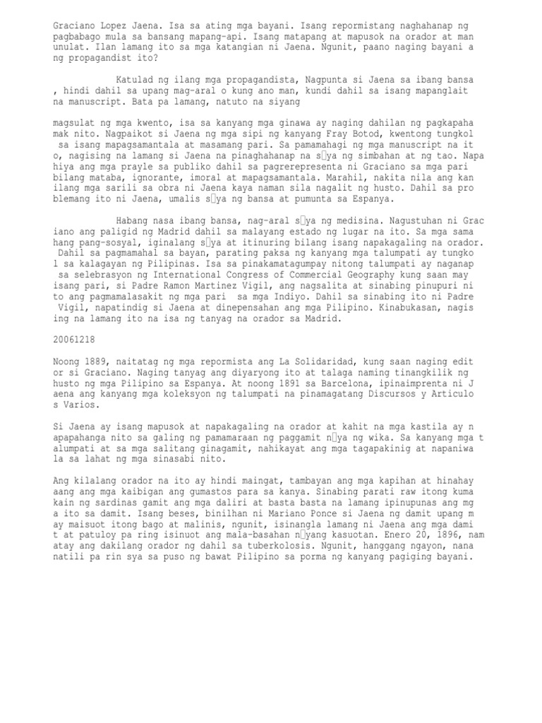 Migz Report.docx - Graciano Lopez Jaena - December 18 1856 to January 20 1896 Graciano López y Jaena commonly known as Graciano López Jaena was a | Course Hero