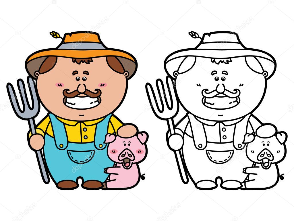Granjero - Página Para Colorear Para Niños Clipart De Stock | Royalty-Free | FreeImages
