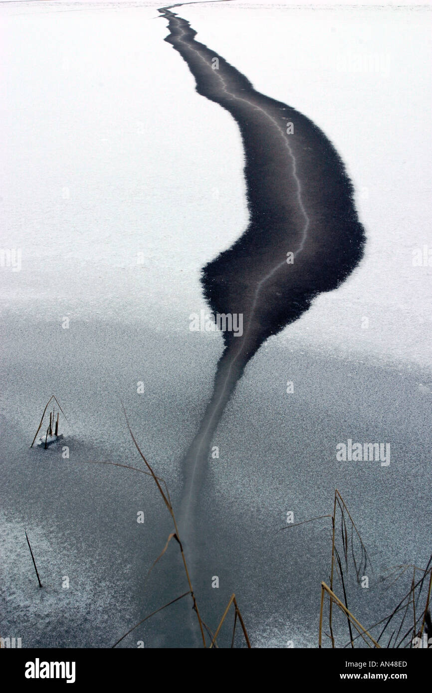 Grieta negra oscura en hielo delgado cubierto de nieve, Finlandia Fotografía de stock - Alamy