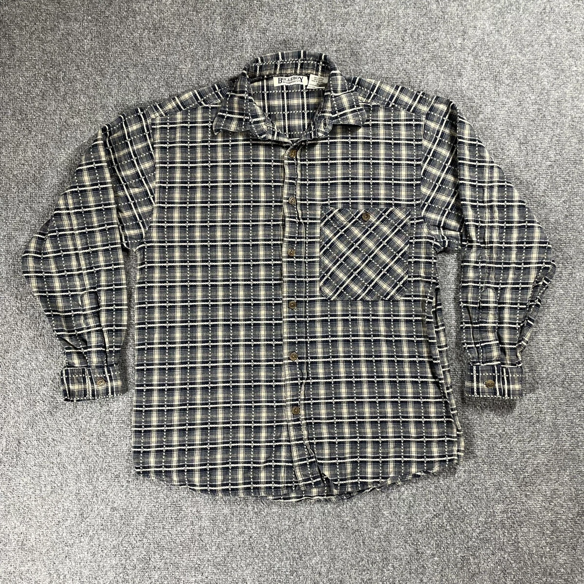 VINTAGE 90s Bugle Boy Textured Knit Plaid Flannel Shirt Size ...
