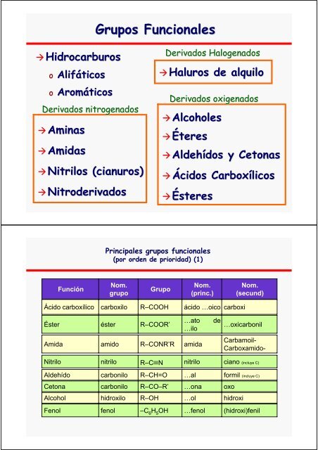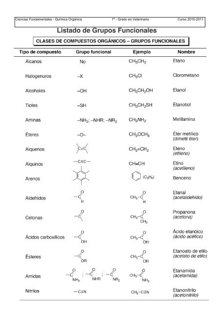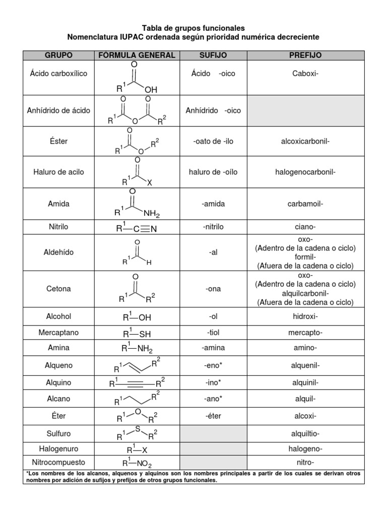 Tabla de grupos funcionales (Química orgánica) | PPT