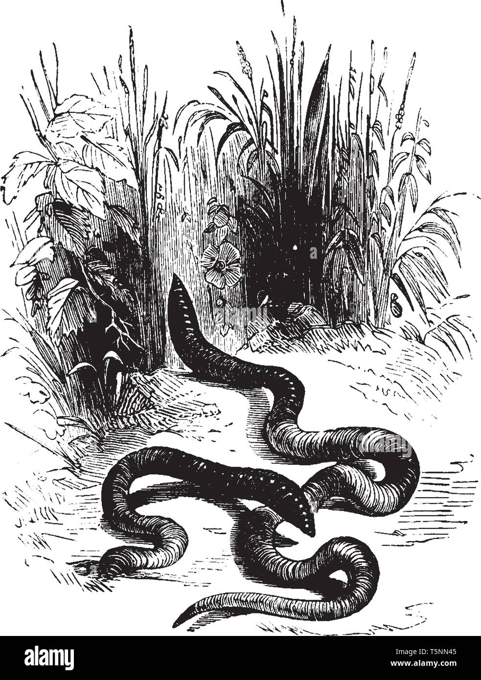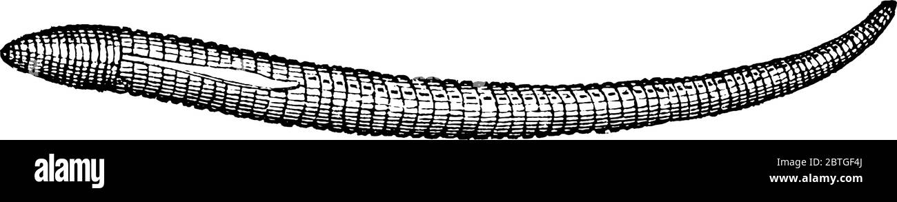 Un gusano de tierra - Lumbricina es un gusano segmentado en forma de tubo, dibujo de líneas vintage o ilustración de grabado Imagen Vector de stock - Alamy