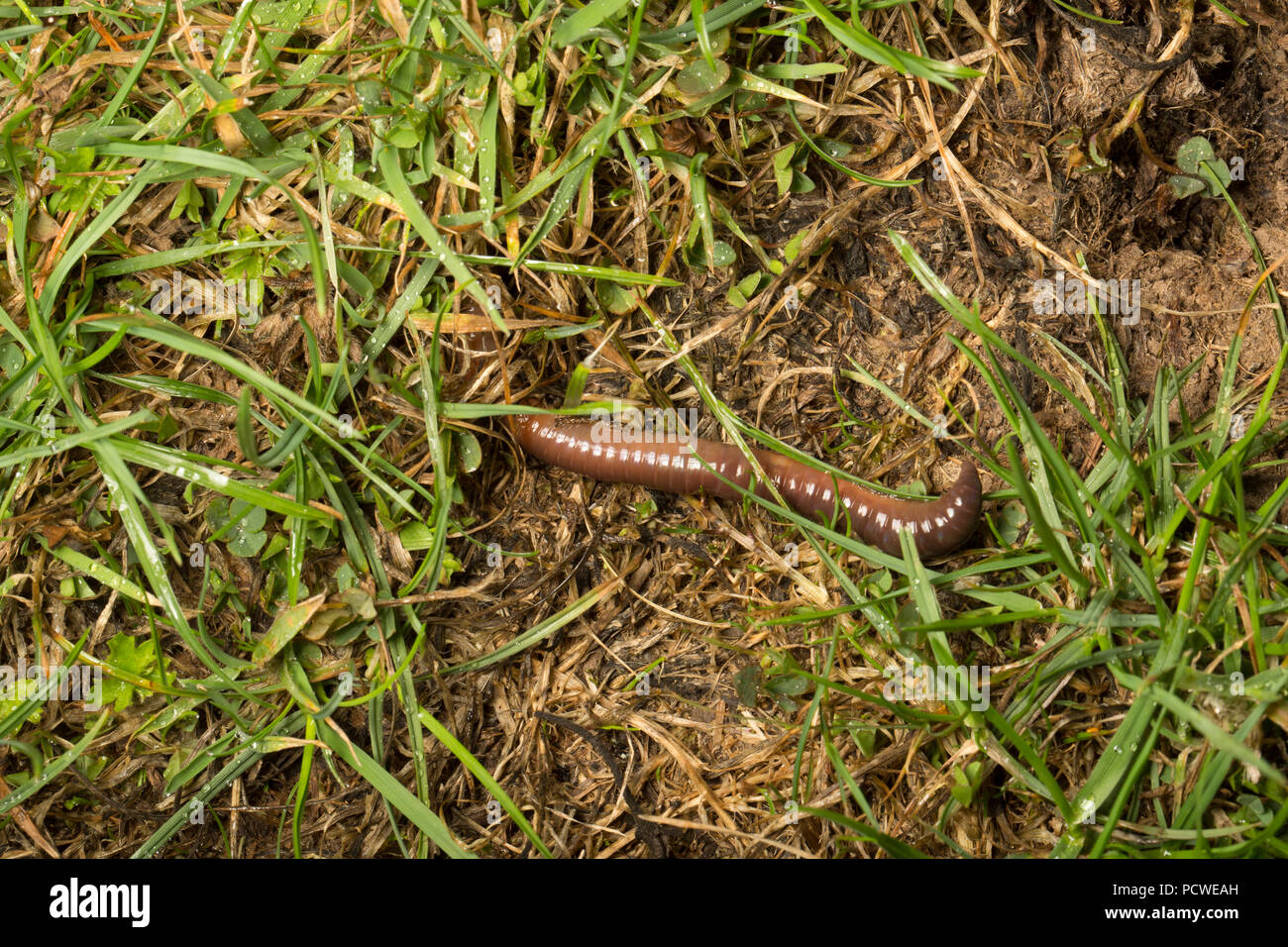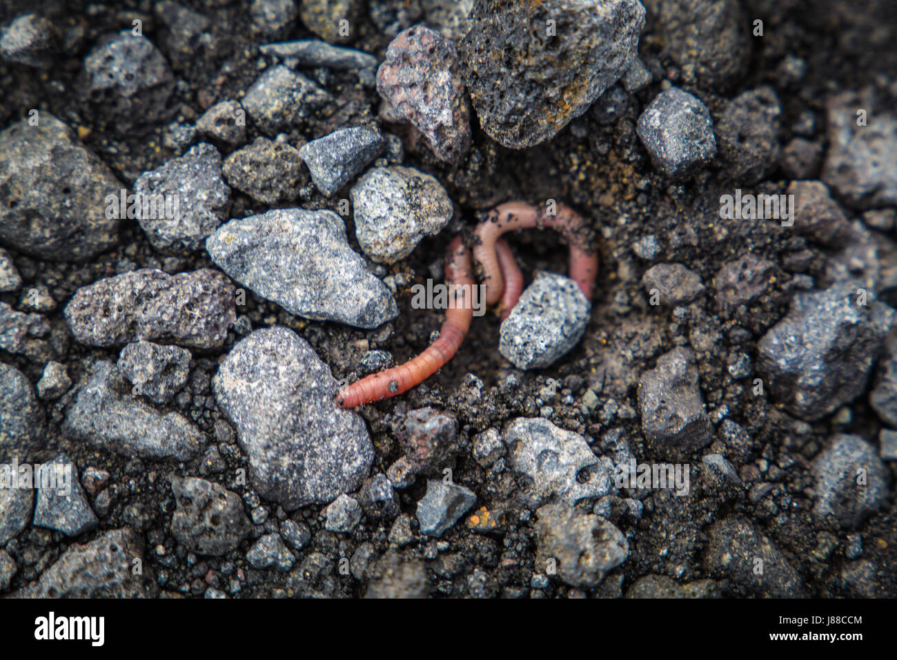 Lumbricus terrestris lombriz común gusano segmentado en terreno rocoso suelo Fotografía de stock - Alamy