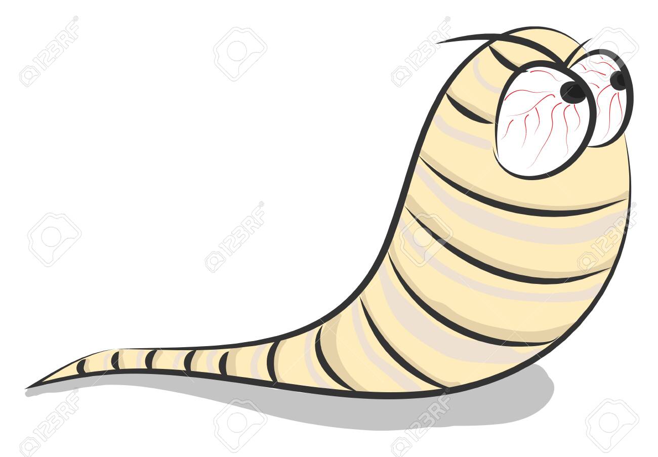 Un Gusano De Dibujos Animados De Color Melocotón Con Su Cuerpo Segmentado Representado Como Rayas De Color Negro Tiene Antenas Y Dos Ojos Saltones Con Obvios Nervios Rojos, Dibujo O Ilustración En