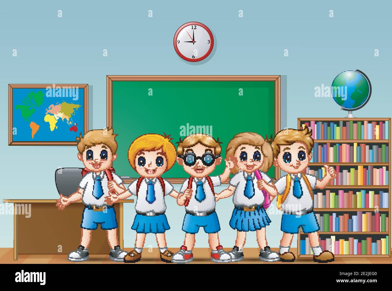 Dibujos animados de niños de escuela feliz en un salón de clase Imagen Vector de stock - Alamy