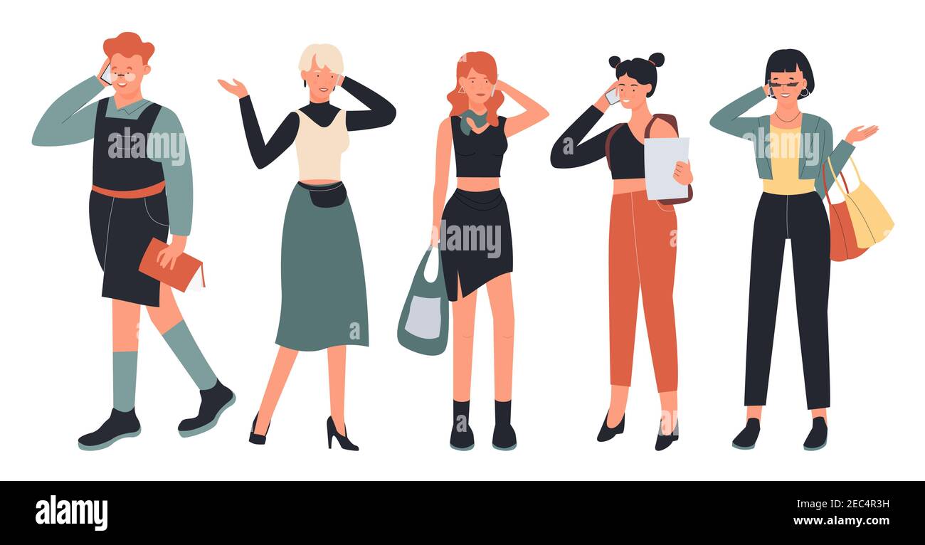 Chica Elegante Hablando Con Su Hermana En El Vector De Dibujos Animados De Teléfono. Chica Elegante Hablando Con Su Hermana Por Teléfono. Ilustración De Dibujos Animados Plana Aislada Ilustraciones svg, vectoriales, clip