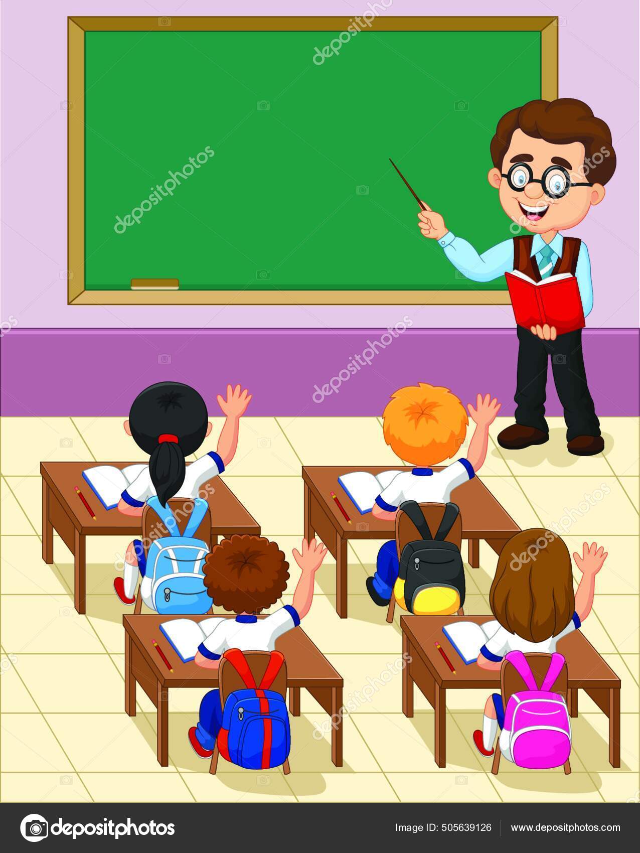 Profesor Hablando Con Niños En El Aula Ilustración De Dibujos Animados Vectoriales De Profesores Y Niños En El Aula Ilustraciones svg, vectoriales, clip art vectorizado libre de derechos. Image 210115474