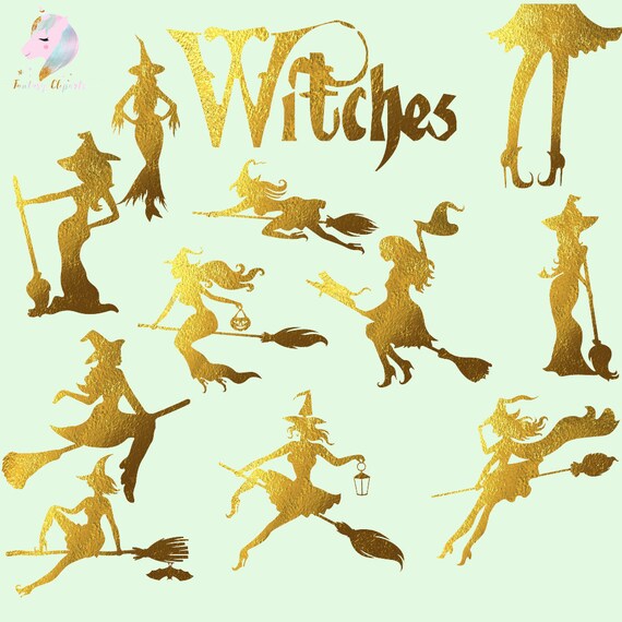 Clipart de brujas, clip art de bruja caliente, bruja en la escoba, brujas voladoras, brujas sexys, gráficos de Halloween, siluetas de papel de oro, zapatos de niña - Etsy España