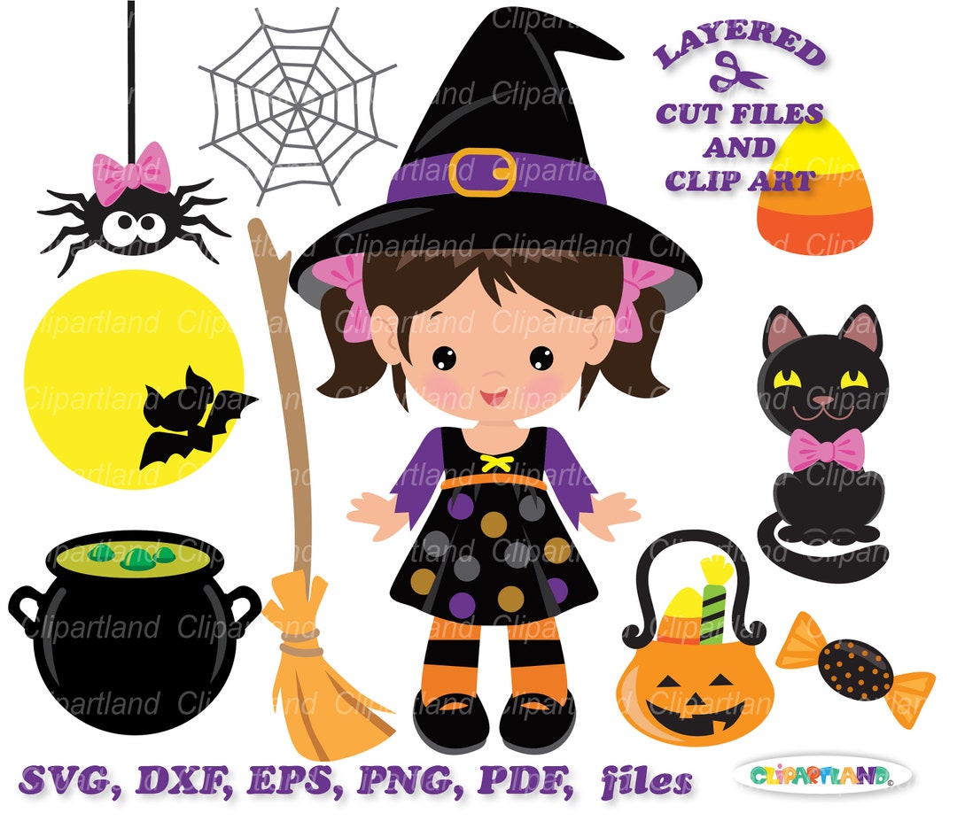 Descarga instantánea. Linda chica bruja de Halloween svg archivo de corte y clip art. Se incluye licencia comercial Wg_9. - Etsy España