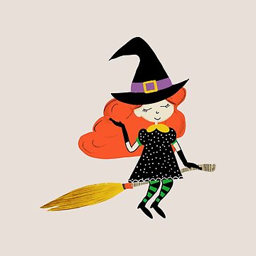Pegatina for Sale con la obra «Bruja linda voladora de Halloween con escoba» de susycosta | Redbubble