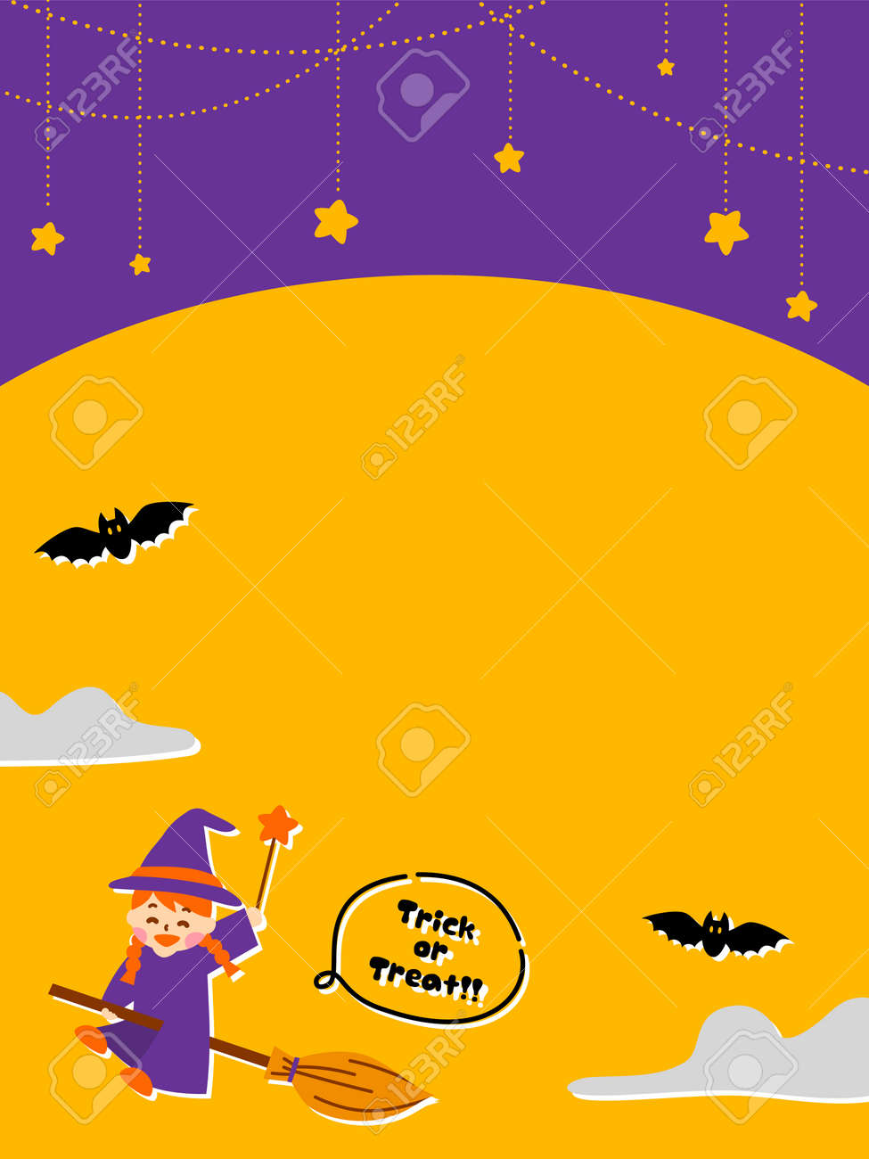 Marco De Halloween De Bruja Voladora (vertical) Ilustraciones svg, vectoriales, clip art vectorizado libre de derechos. Image 173435775