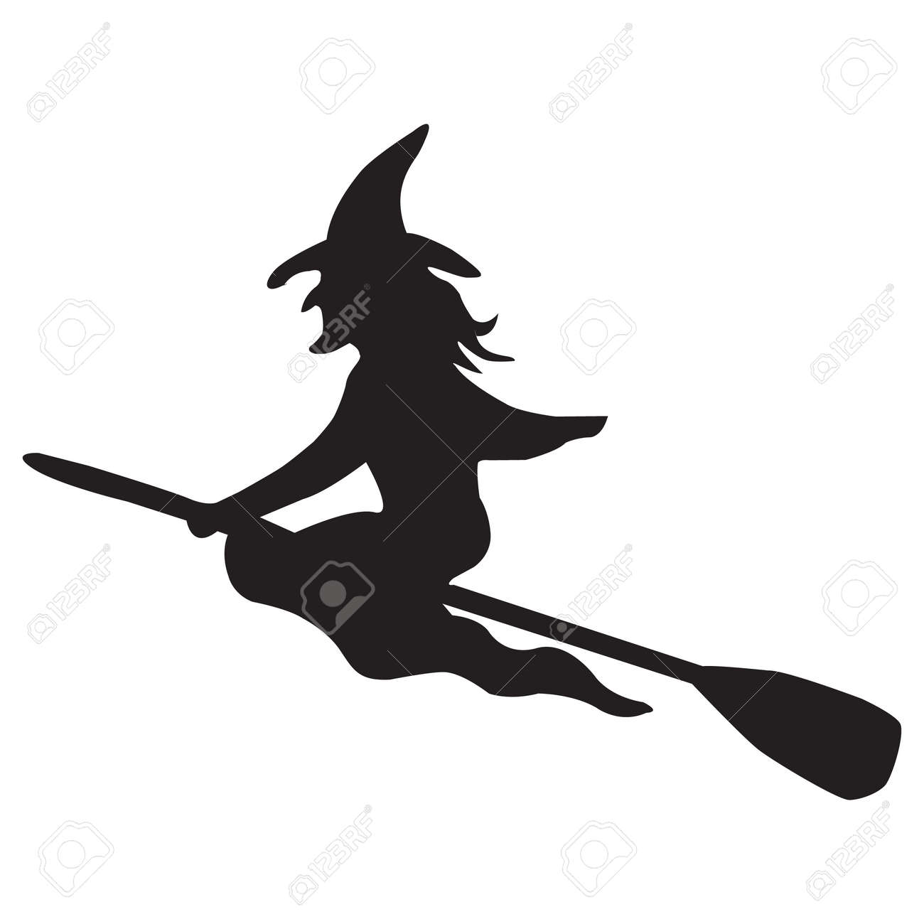 Icono De Halloween Aislado En Un Fondo Blanco Arte Vectorial Emocional Silueta De Bruja Voladora Clipart Ilustraciones svg, vectoriales, clip art vectorizado libre de derechos. Image 190742676