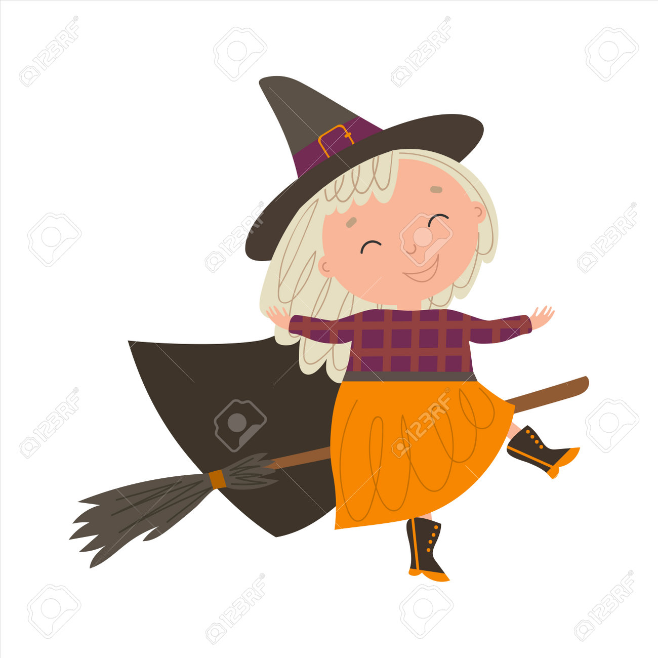 Pequeña Bruja Voladora De Halloween. Ilustración Vectorial Ilustraciones svg, vectoriales, clip art vectorizado libre de derechos. Image 176843385