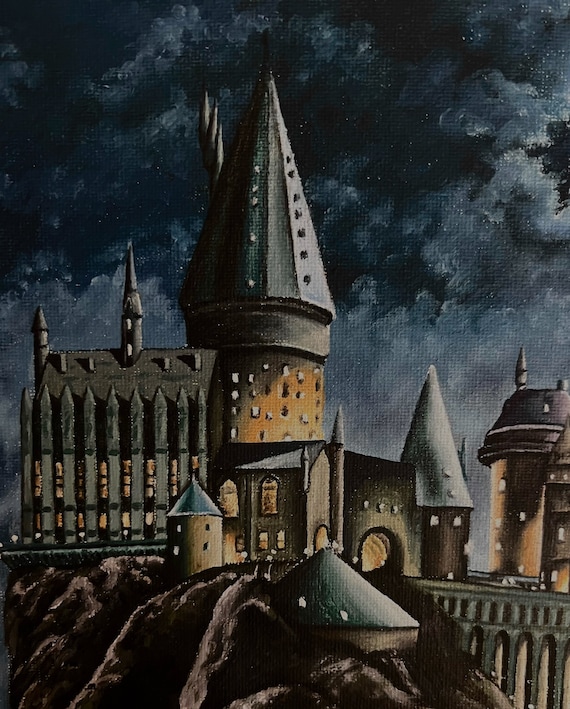 Harry Potter Hogwarts Castillo de Hogwarts por la noche Bellas Artes Impresión de pintura original - Etsy España