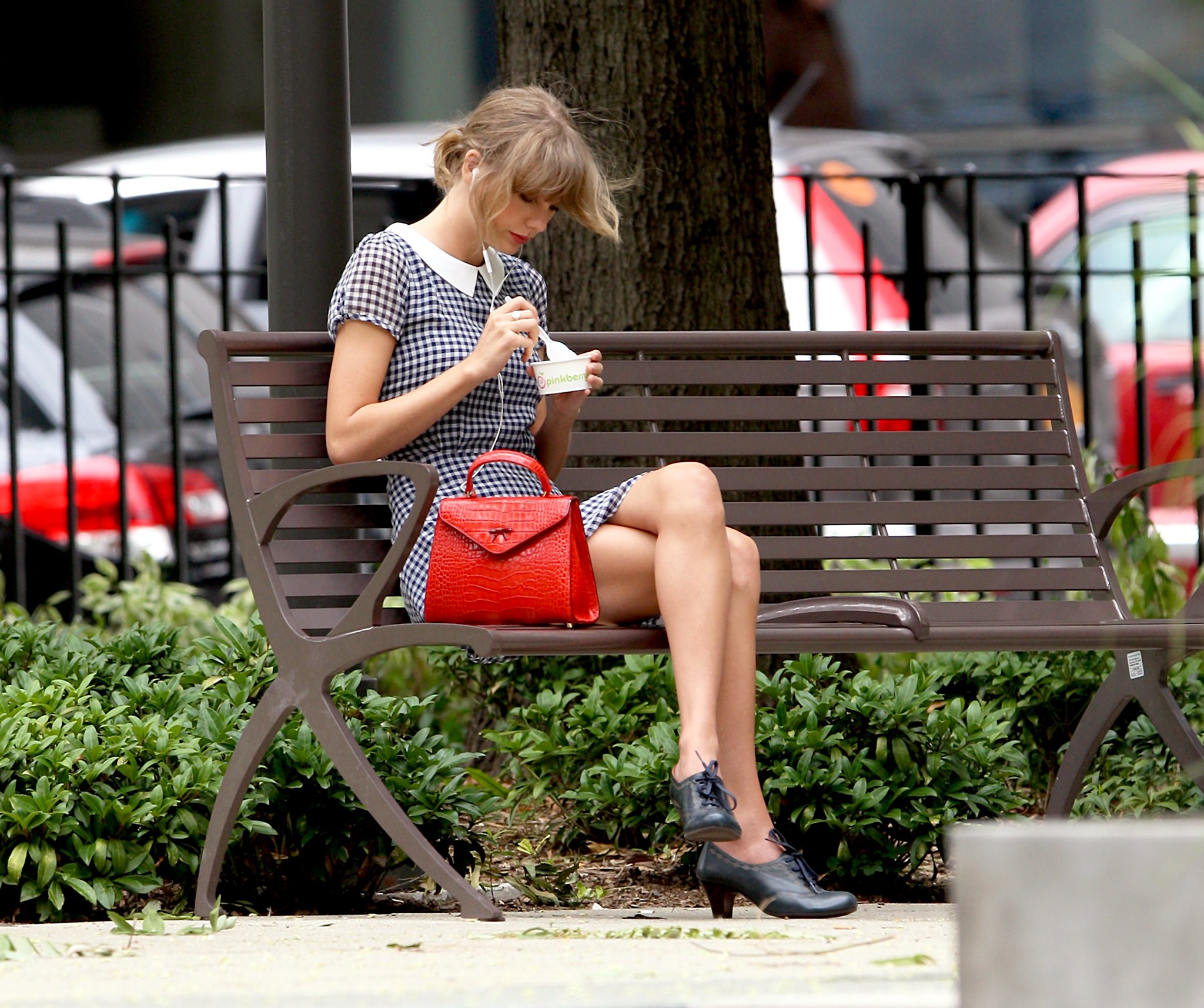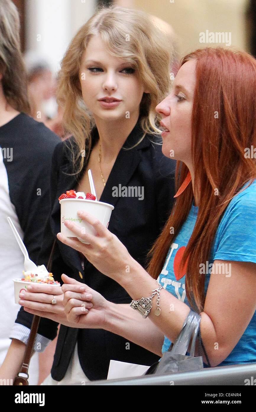Taylor Swift eating a Pinkberry frozen yogurt while out shopping ...