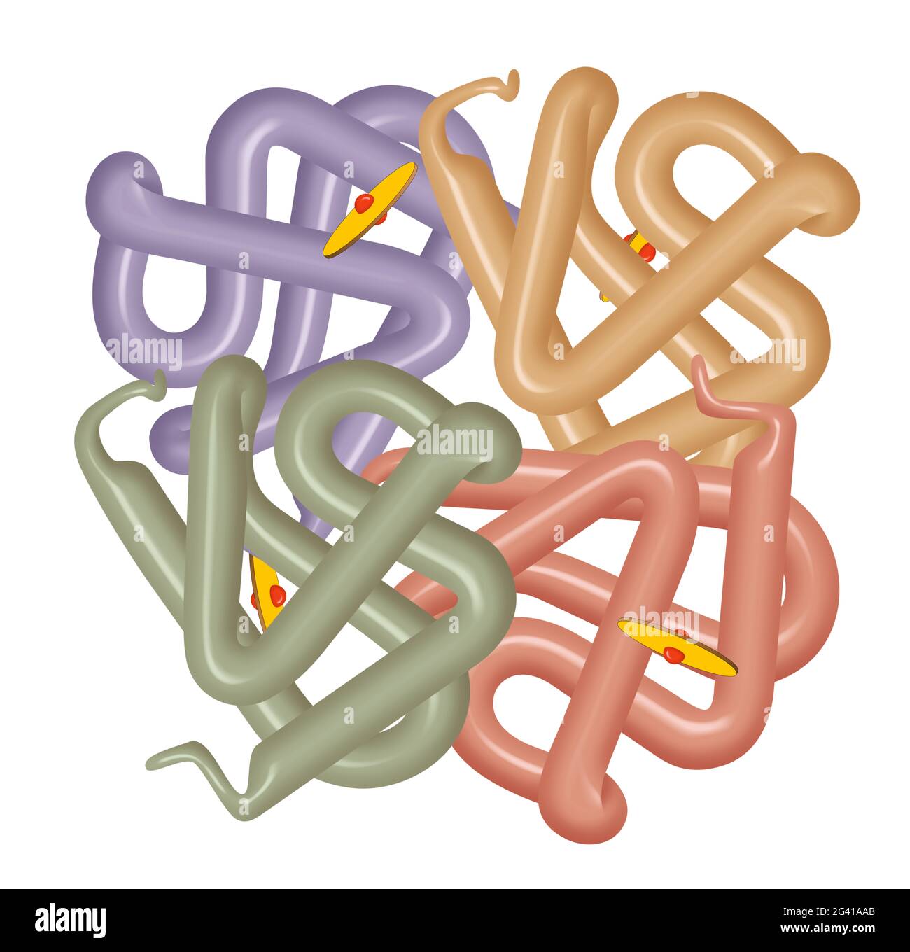 La hemoglobina (Hb), hemoglobina, estructura química. Se encuentra en los glóbulos rojos; permite el transporte de oxígeno por la sangre Fotografía de stock - Alamy