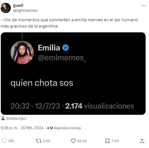 Emilia Mernes es la persona más graciosa de la Argentina y un hilo de Twitter lo demuestra | TN