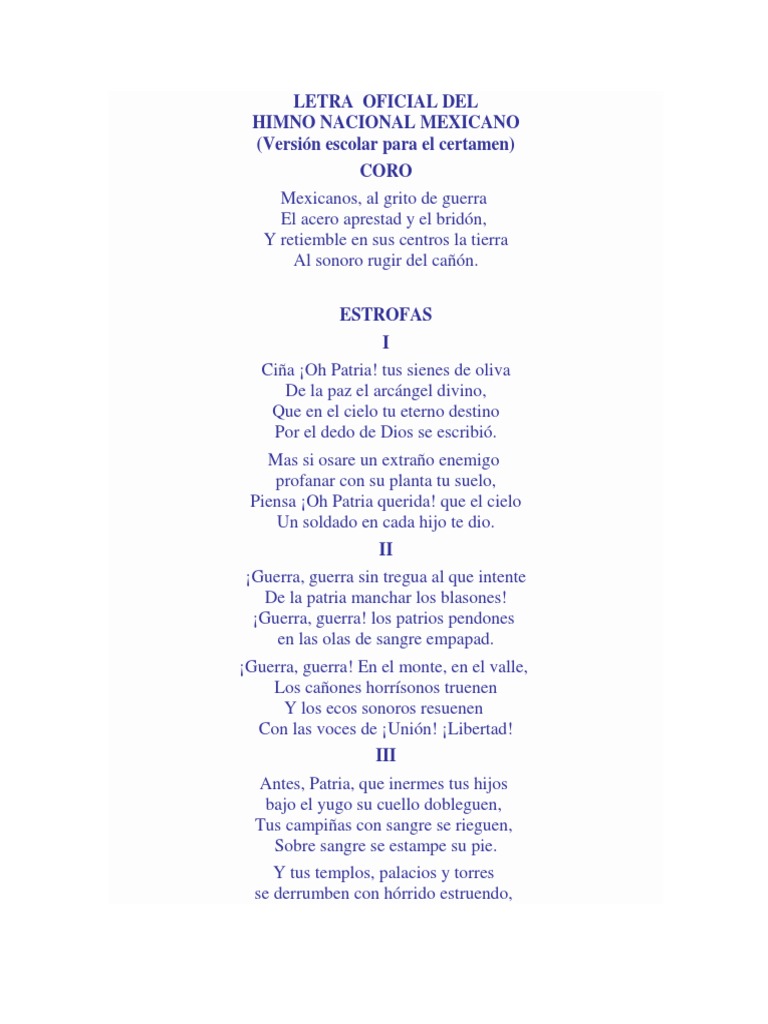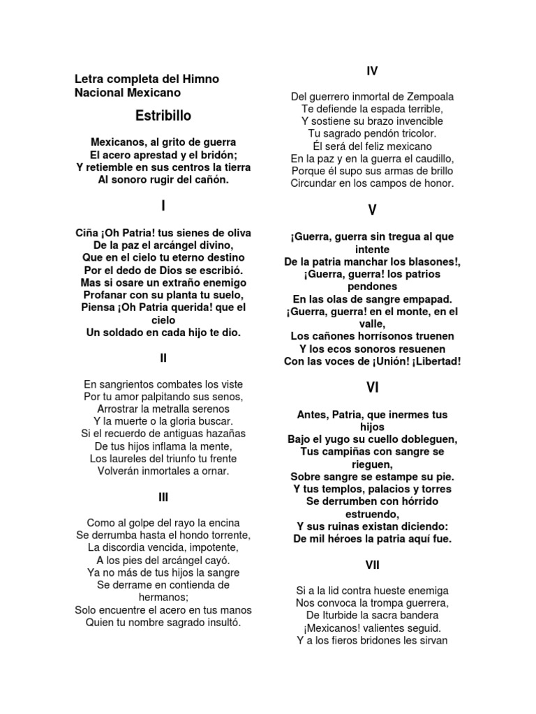 Himno nacional mexicano letra completa PDF | Facilitando tu estudio | uDocz