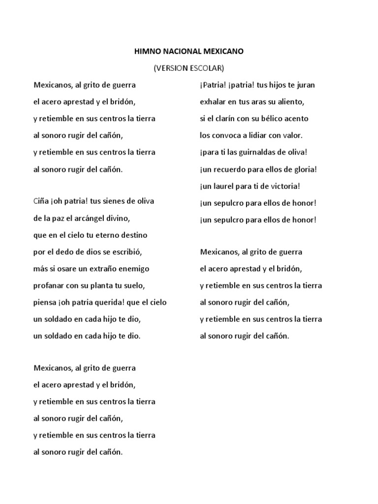 Himno nacional mexicano versión escolar letra | Versión corta del himno nacional mexicano | Letra del himno nacional, Himno nacional, Letra himno nacional