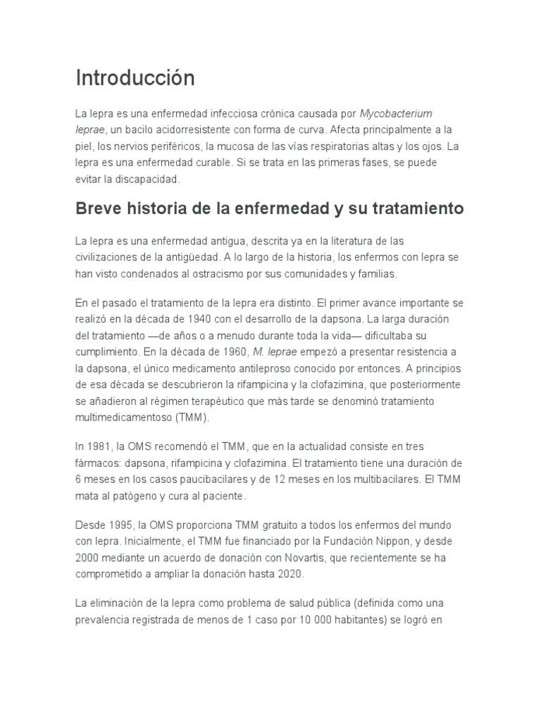Lepra - Generalidades La Lepra fue una de las primeras enfermedades descritas en el mundo antiguo; y - Studocu